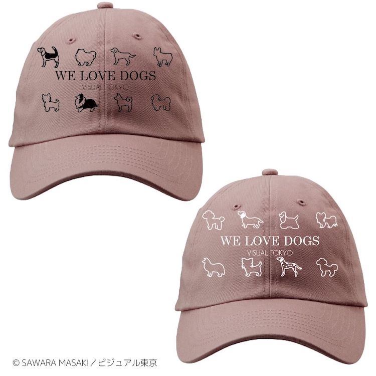 ワンちゃん柄を選べるキャップが登場!ピンクカラーのキャップは、可愛らしい雰囲気で、華やかな印象になります。後ろのストラップでサイズ調節可能です。