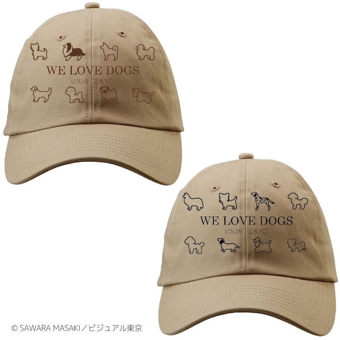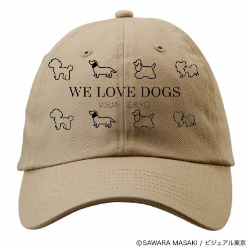ワンちゃん柄を選べるキャップが登場!ベージュカラーのキャップは、可愛らしい雰囲気で、華やかな印象になります。後ろのストラップでサイズ調節可能です。