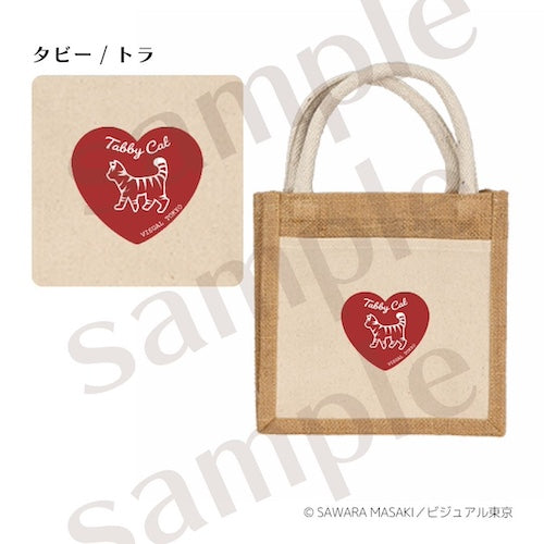 動物たちのジュートバッグ/赤いハート/猫