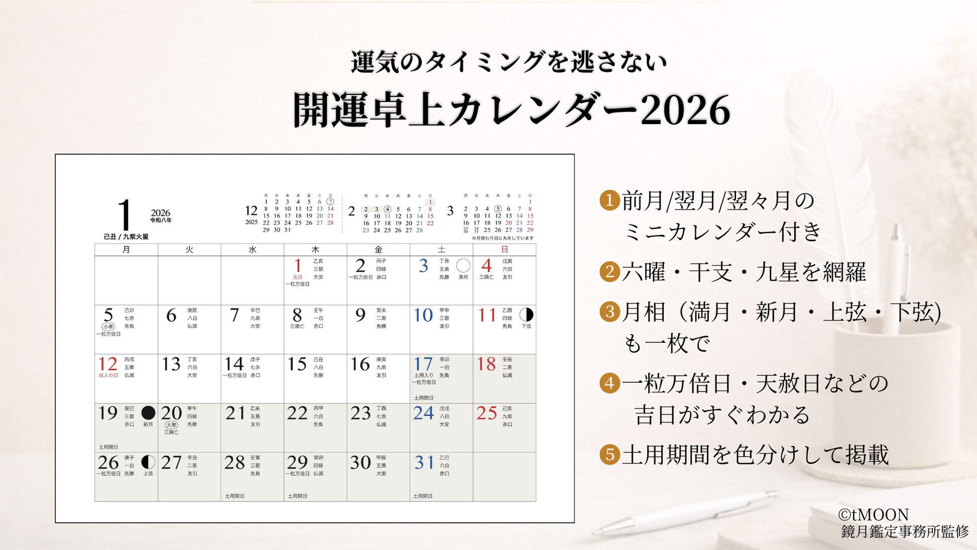 開運卓上カレンダー2026[2026年1月〜2026年12月版]