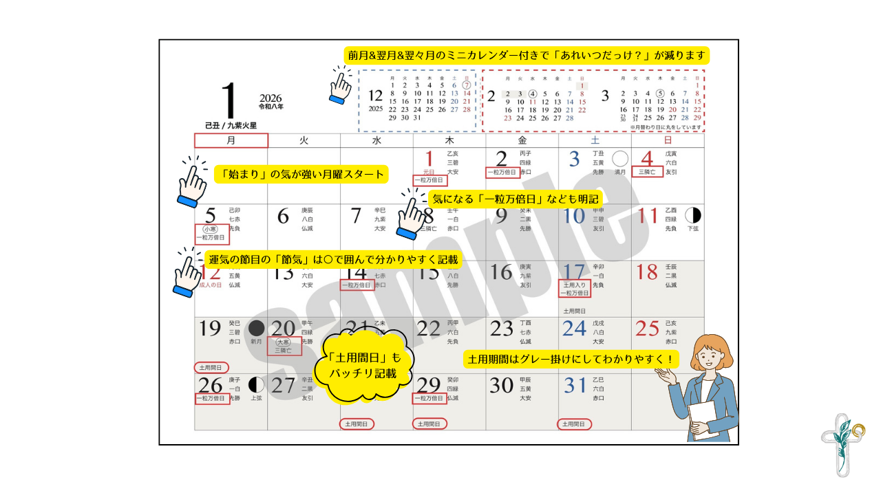 ・暦解説ページ付き(六曜・土用・月相・選日の意味を解説)